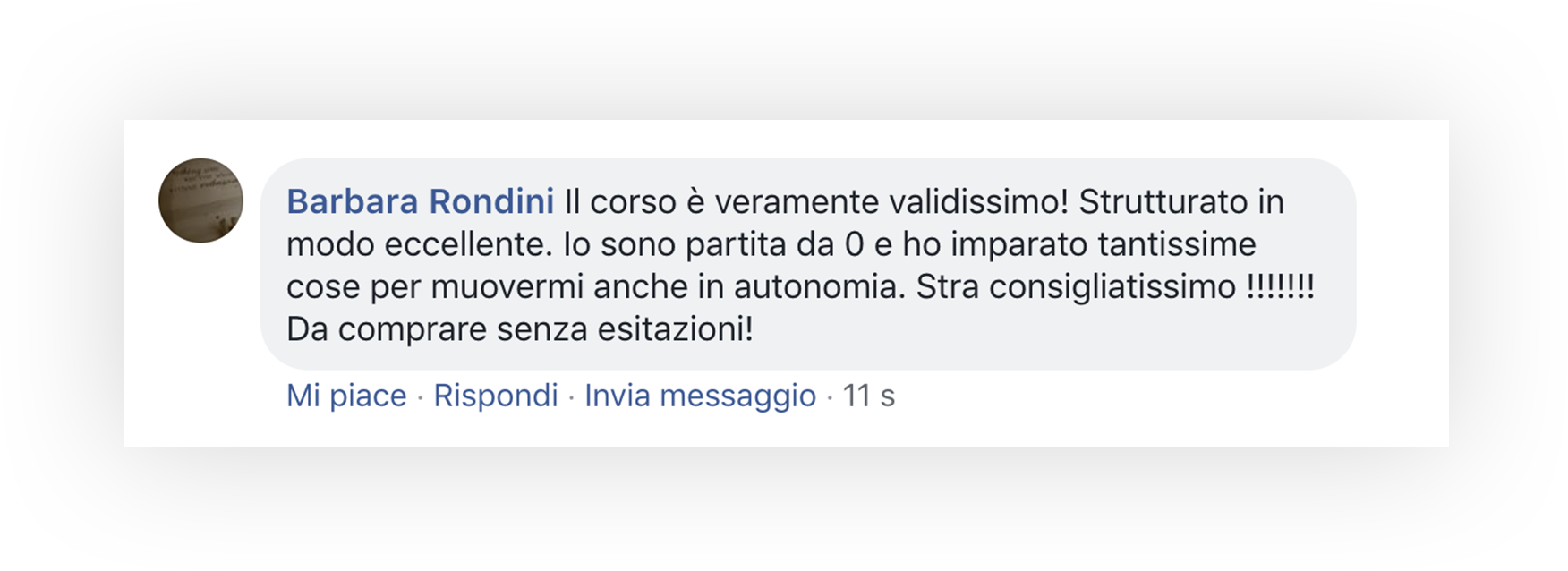 Ti prenderemo per mano e ti porteremo a comprendere tutte le funzioni di questo magico programma. Acquisirai un tuo metodo di lavoro, riuscirai a destreggiarti all'interno del programma in piena autonomia, niente sarà lasciato al caso.
